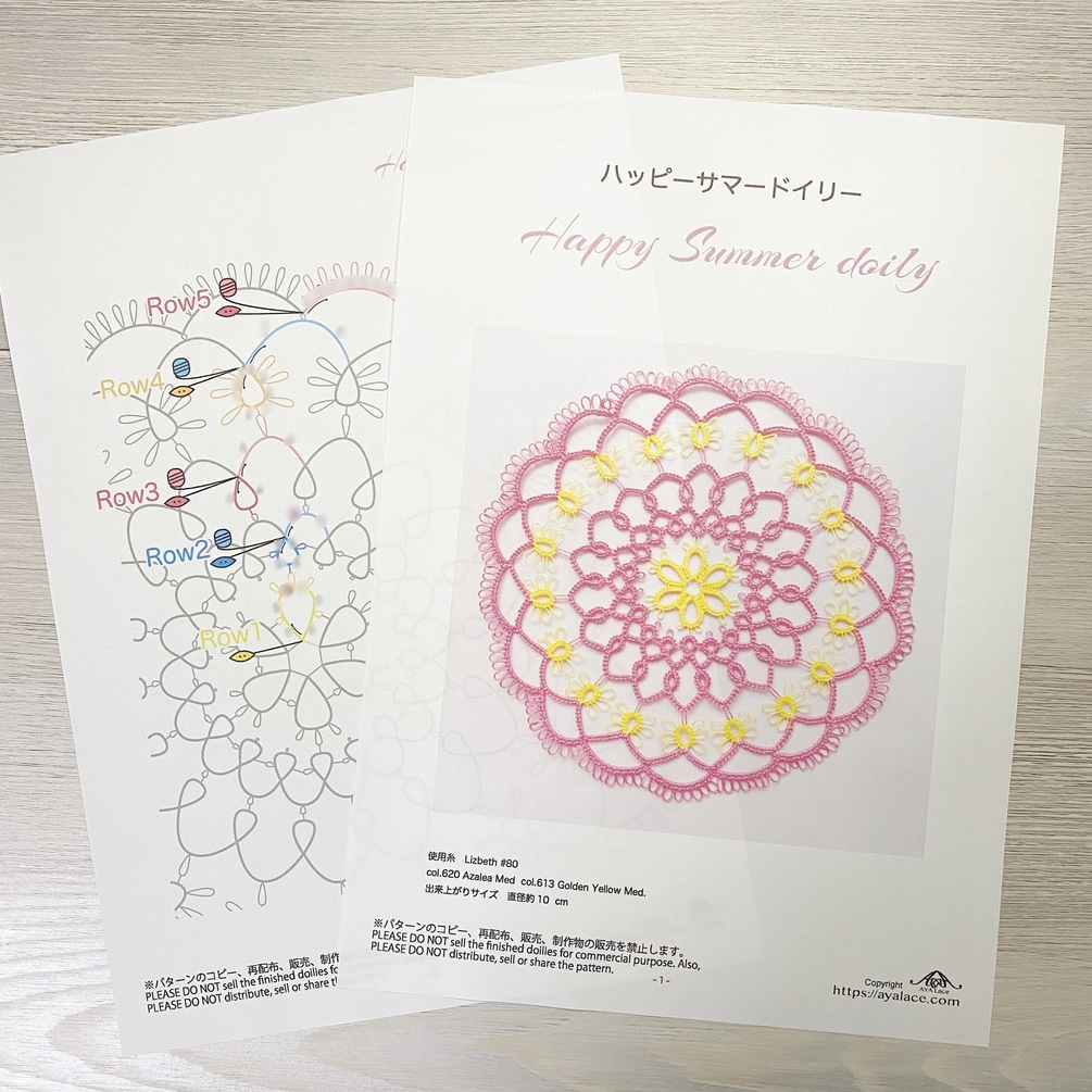 Tatting lace Pattern Happy Summer Doily[PDF file Downlode]